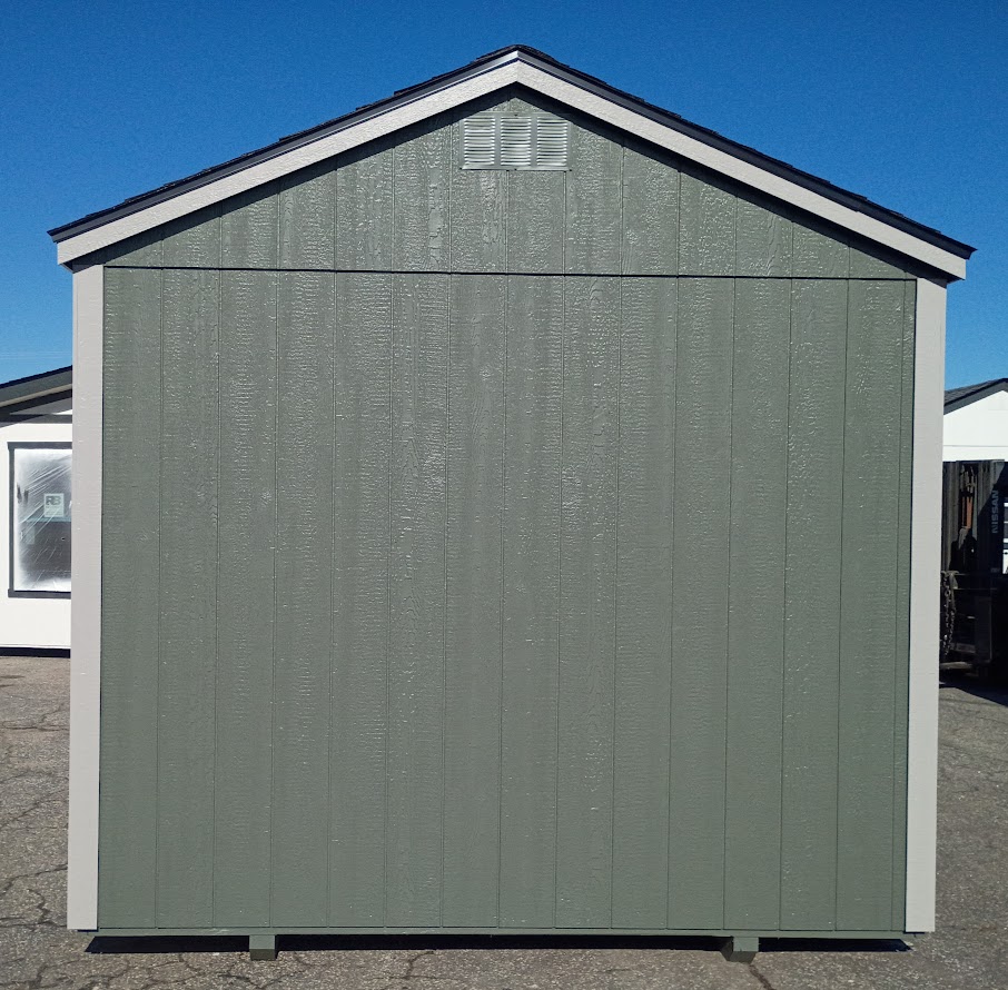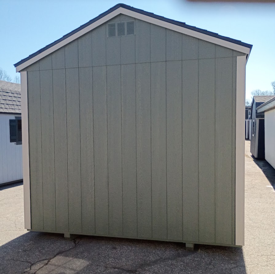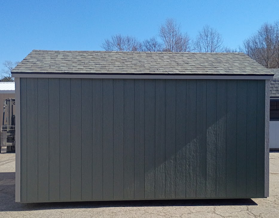 Condition: NEW Style: Cottage Base Color: Pewter Green (Custom) Trim Color: Acier (Custom) Roof Color: Georgetown Gray Shingles Dimensions: 10’W x 16’L Add-ons: