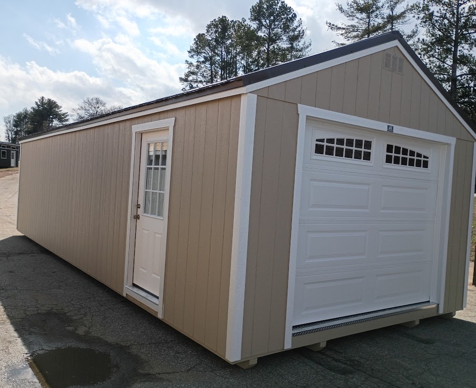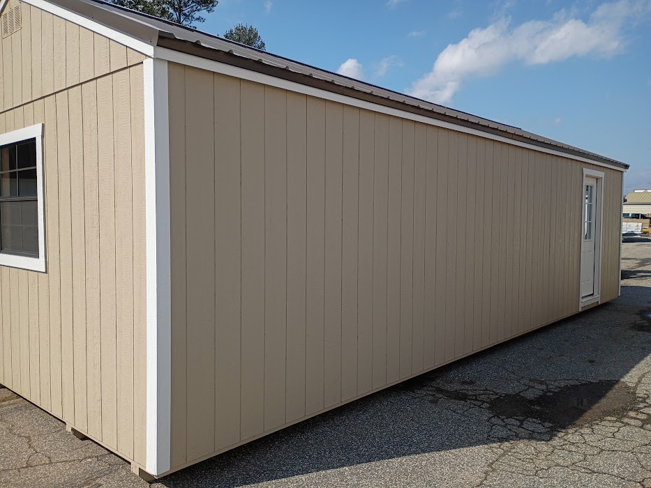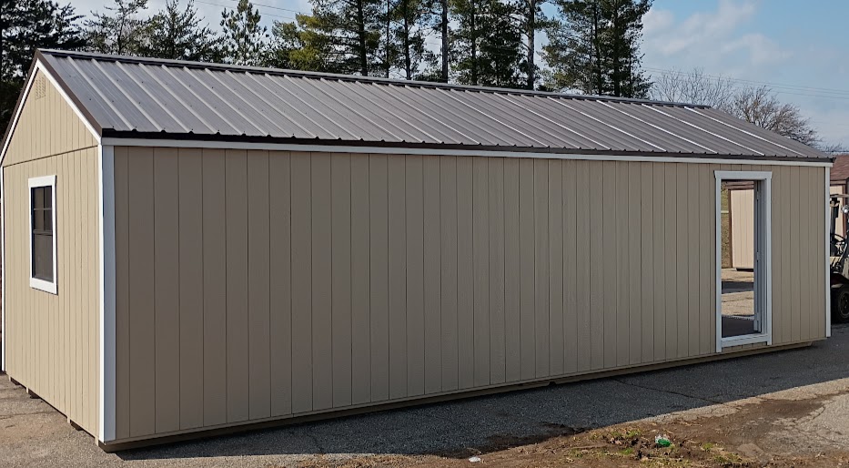 Condition: NEW Style: Cottage Base Color: Universal Khaki Trim Color: Ice Cube White Roof Color: Burnished Slate Metal Dimensions: 14′ W x 32′ L Add-ons: