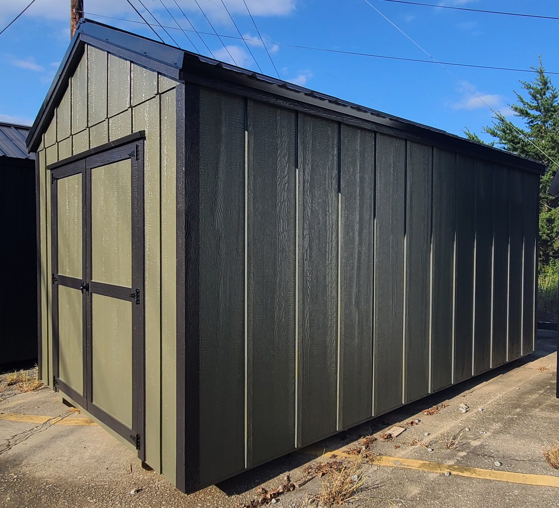 Condition: NEW Style: Cottage Base Color: Roycroft Bronze Green Trim Color: Black Magic Roof Color: True Black Dimensions: 10’W x 16’L Add-ons: