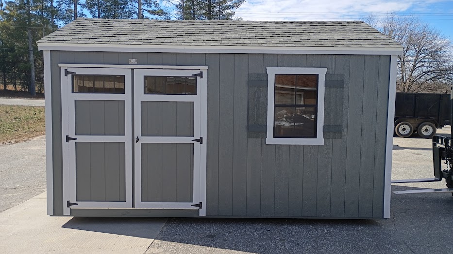 Condition: NEW Style: Cottage Base Color: Grizzle Gray Trim Color: Lazy Gray Roof Color: Georgetown Gray Shingles Dimensions: 10’W x 16’L Add-ons: