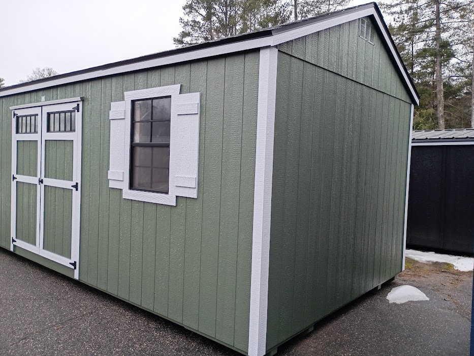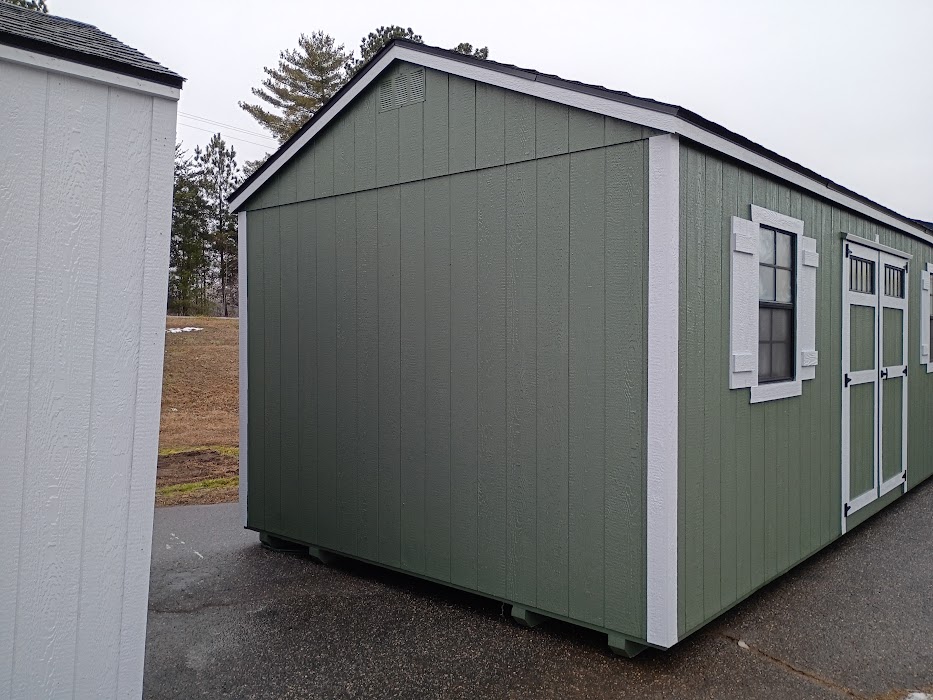 Condition: NEW Style: Cottage Base Color: Rosemary Trim Color: Lazy Gray Roof Color: Georgetown Gray Shingles Dimensions: 12’W x 24’L Add-ons: