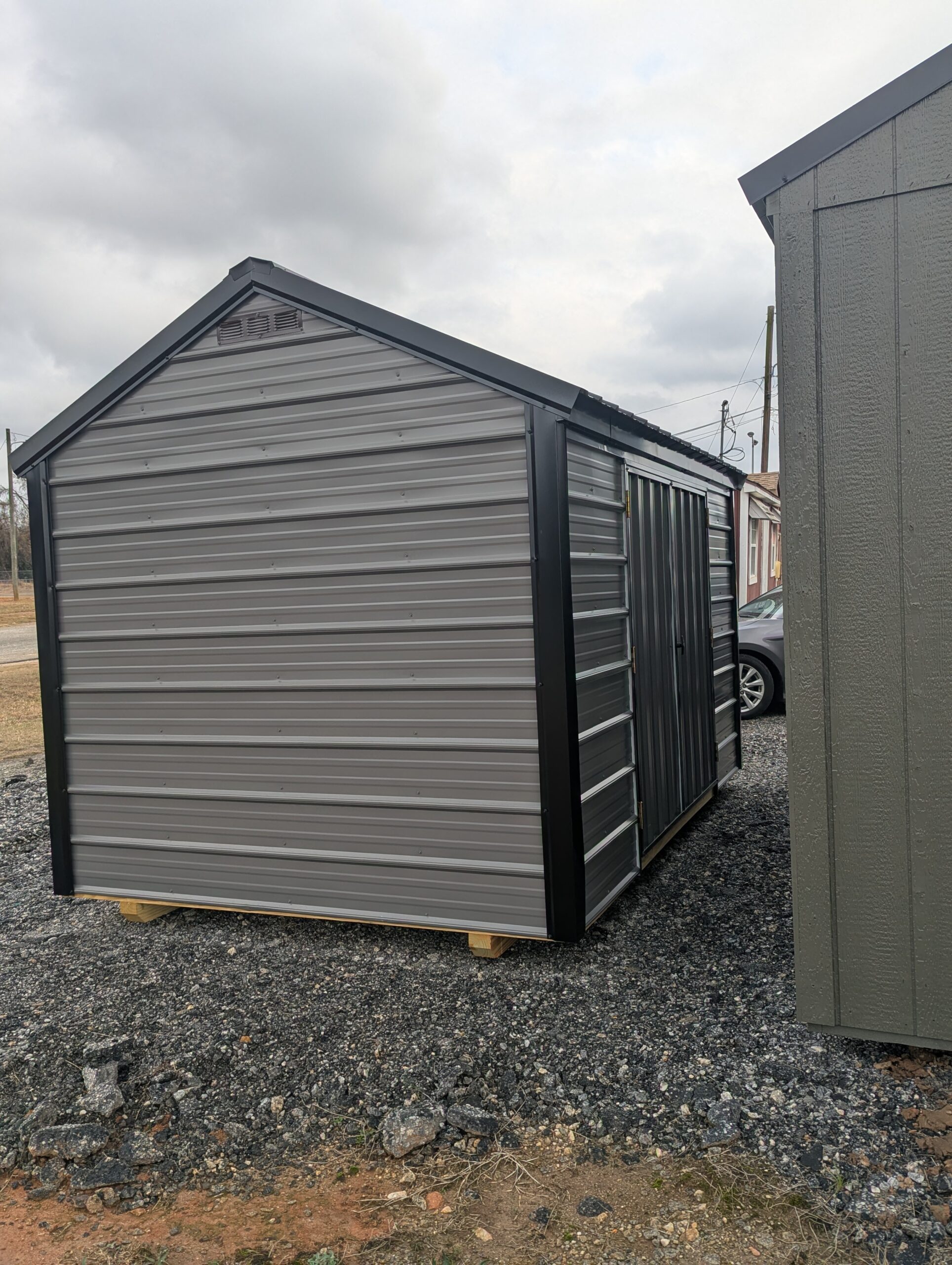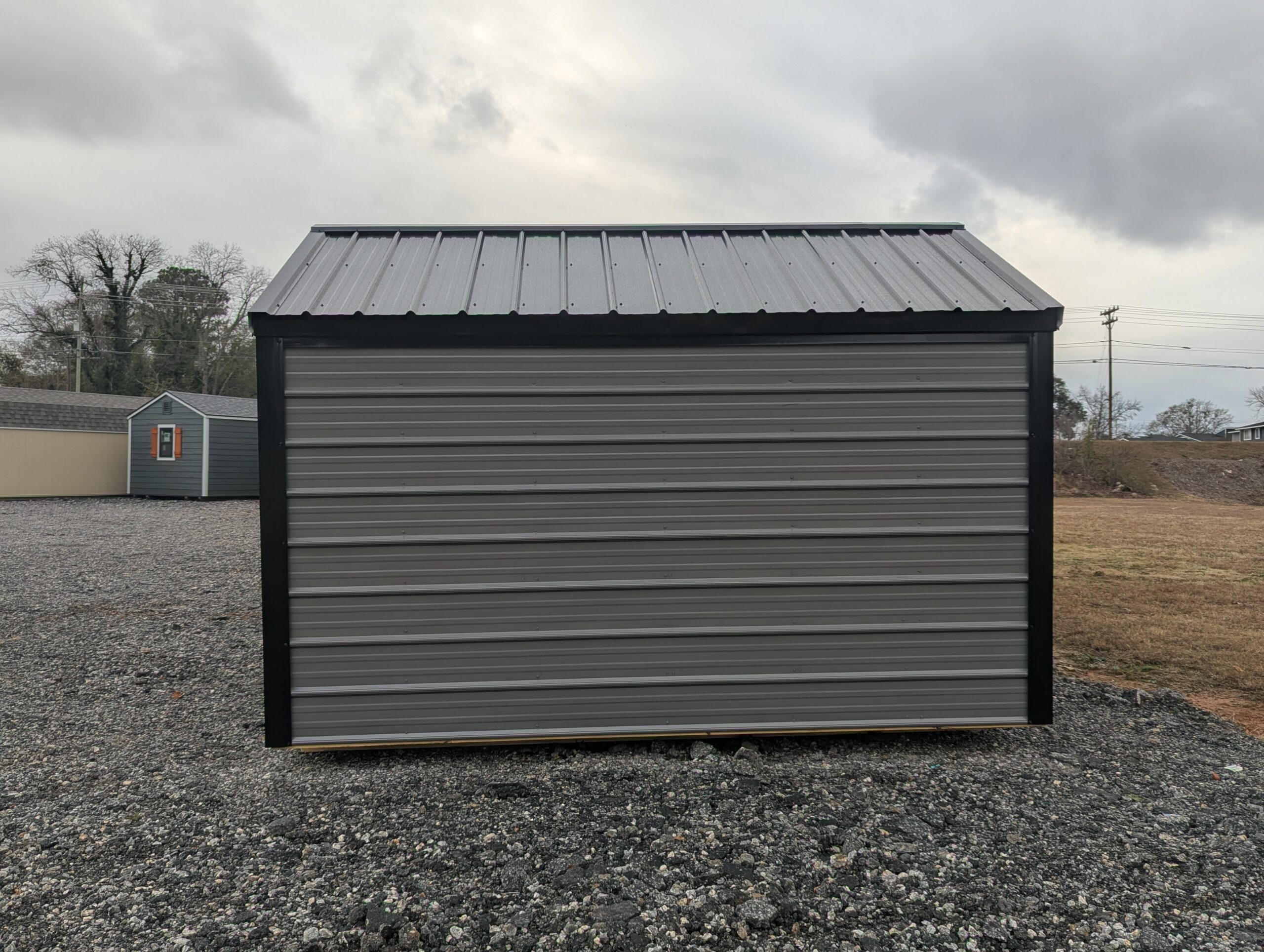 Condition: NEW Style: Standard Metal Base Color: Charcoal Gray Trim Color: True Black Roof Color: True Black Dimensions: 8’W x 12’L Add-ons: