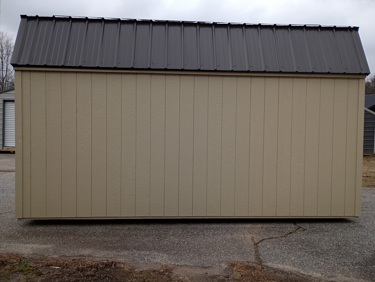 Condition: NEW Style: Value Barn Base Color: Favorite Tan Trim Color: Favorite Tan Roof Color: Burnished Slate Metal Dimensions: 10’W x 16’L Add-ons: